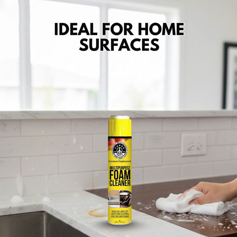 Bring back the fresh, clean look of your car and home with THREE GUYS Multi-Purpose Foam Cleaner. This powerful car foam cleaner penetrates deep to remove stubborn dirt, grime, stains, and odors from a variety of surfaces. Specially formulated to clean car interiors, upholstery, carpets, fabric, vinyl, and even chrome surfaces — this is your all-in-one solution for spotless results.